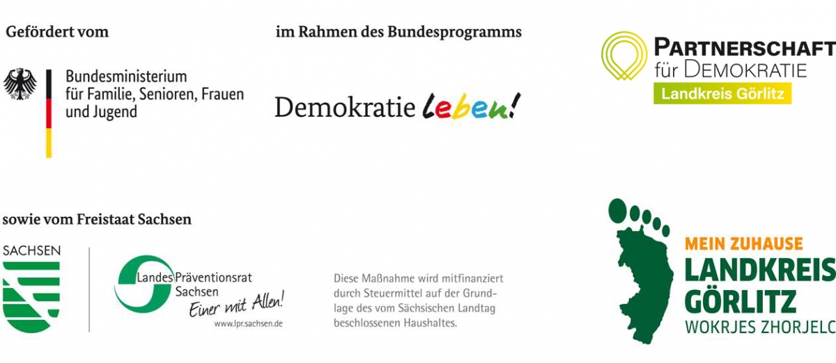 Der Mobile Jugendclub wird im Aktionsfonds der Partnerschaft für Demokratie im Landkreis Görlitz gefördert. Die Partnerschaft für Demokratie des Landkreises Görlitz wird im Rahmen des Bundesprogramms „Demokratie leben!“ durch das Bundesfamilienministerium, den Freistaat Sachsen sowie den Landkreis Görlitz gefördert. Weitere Informationen findet Ihr unter www.neisse-pfd.de und www.demokratie.landkreis.gr